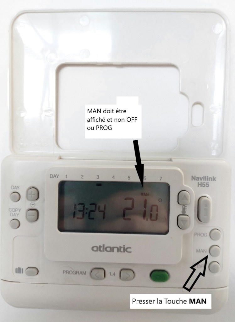 Le chauffage est activé sur la chaudière, il faut ensuite l’activer sur le thermostat