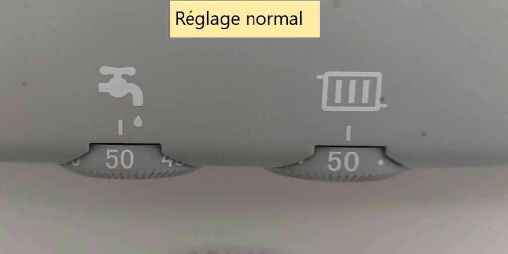 Si vous n’avez plus de pression, inférieure à 0,5 Bar, la chaudière se met en arrêt, et ne produit plus d’eau chaude ni de chauffage. Si il est présent retirer le carter sous la chaudière en le tirant vers vous. Tournez la manette située a droite en surveillant le manomètre à gauche, vous allez entendre un bruit d’écoulement, c’est que le remplissage est en cours. Remettez la manette en position initiale lorsque vous avez atteint 1,5 bar.
